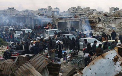 16 autobus ed altre automobili sono state prese in ostaggio mentre stavano lasciando Aleppo. Le milizie che appoggiano il dittatore siriano hanno ucciso 14 ostaggi sparando sulle loro auto ed hanno bloccato il passaggio ai veicoli che trasportavano i civili.
