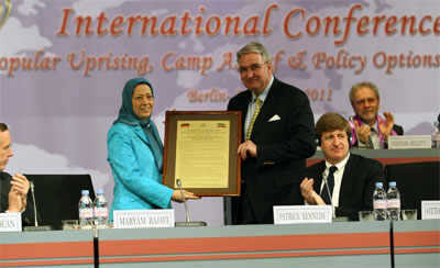 Leo Dautzenberg (membro del Parlamento tedesco 1.998-2.011) ha consegnato le dichiarazioni dei 150 membri del Bundestag, relative alla protezione umanitaria dei dissidenti iraniani a Campo Ashraf, la rimozione della PMOI dalla lista terroristica degli Stati Uniti e per fermare le esecuzioni in Iran.