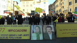 RaiNews, 26 gennaio 2016 – In concomitanza con la visita in Italia di Hassan Rohani, presidente della Repubblica islamica dell’Iran, si è tenuta in piazza del Pantheon a roma una manifestazione contro l’ondata di esecuzioni in Iran e l’attacco missilistico a Camp Liberty.