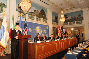 Gli altri oratori alla conferenza sono stati: l’ex-sindaco di Chicago Richard Daley, l’ex-Ambasciatore americano nel Regno Unito, Philip Lader e l’ex-Consigliere Politico al Dipartimento del Tesoro del Terrorism and Financial Intelligence, Avi Jorisch.