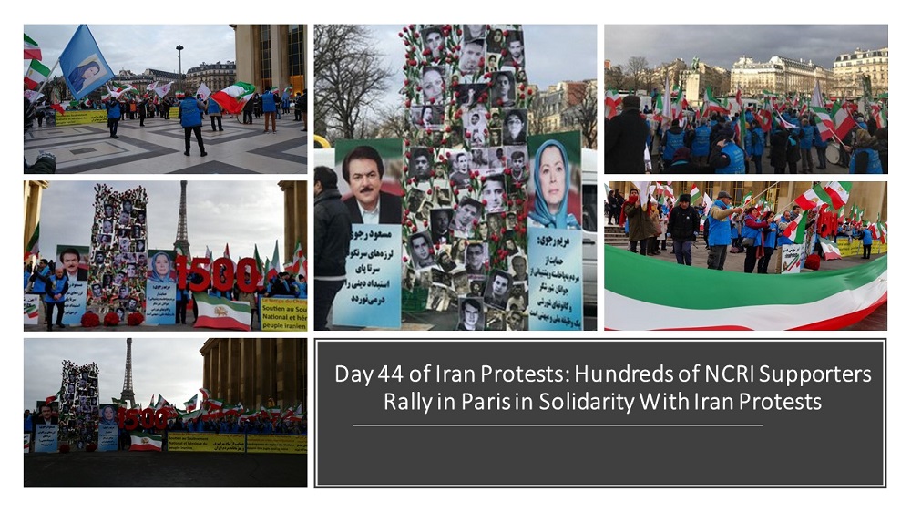 Centinaia di sostenitori del Consiglio Nazionale della Resistenza Iraniana (NCRI) in Francia si sono radunati giovedì nella rinomata piazza dei diritti umani di Parigi, Place de Trocadero, in solidarietà con le proteste dell’Iran e per condannare i crimini contro l’umanità commessi dalla dittatura religiosa.