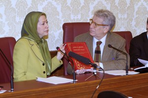 Rispondendo ad una domanda del Vice Presidente della Commissione esteri, Paolo Corsini, Maryam Rajavi ha spiegato che il Consiglio Nazionale della Resistenza Iraniana ha proposto a tutti i movimenti di opposizione in Iran un fronte di solidarietà sugli obiettivi della separazione tra Stato e religione e di cambiamento radicale, su base democratica, dell’attuale assetto di potere.