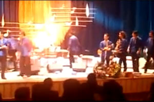 Foto: Agenti in borghese del Ministero dell’Intelligence e la Sicurezza (MOIS) del regime iraniano e membri delle forze para-militari Basij, hanno fatto irruzione in una sala per concerti della città di Yazd a Maggio 2014.