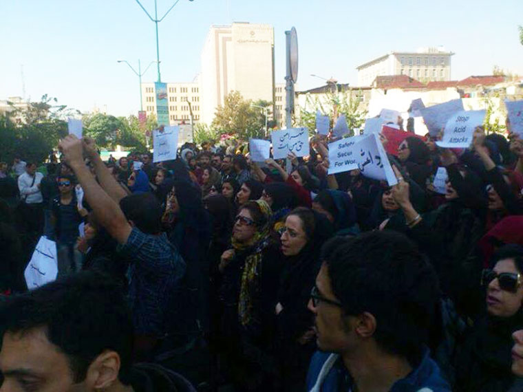 Le bande di motocicliste hanno spruzzato acido sui volti di oltre una dozzina di donne che sono state considerate non adeguatamente vestite basati su codice di abbigliamento del regime.