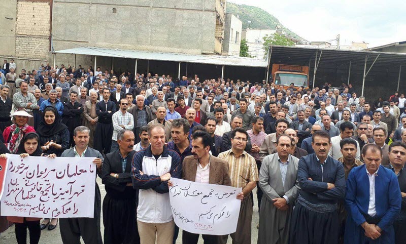 A Kazeroon gli insegnanti si sono riuniti intonando: ”L’insegnante è disposto a morire ma non accetta la discriminazione”; “Gli insegnanti imprigionati devono essere liberati”. Su uno dei cartelli compariva la scritta: “Il posto dell’insegnate è un’aula non il carcere.”