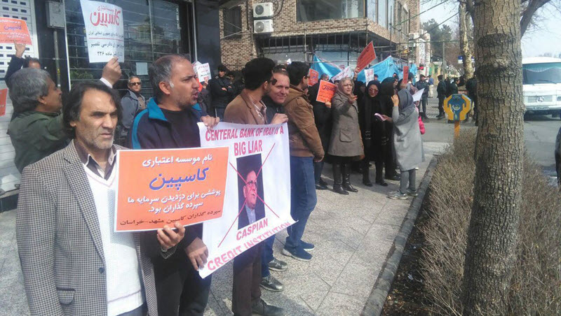 A Mashhad, le vittime della truffa hanno protestato di fronte alla filiale della Caspian a Khayyam Street. Ed hanno gridato: “La Caspian ha rubato e il governo l’ha appoggiata!”.