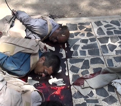 Nella foto a destra, al centro Rahman, giustiziato con le mani legate dietro la schiena.