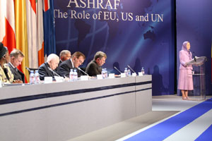 Sono lieta di essere di nuovo qui, nella sede della democrazia europea. La presenza di personalità e di rappresentanti eletti, di Europa e Stati Uniti, al nostro fianco oggi, con lo scopo di discutere su una soluzione per la protezione dei residenti di Ashraf, e mettere fine alla dittatura in Iran. La vostra presenza simboleggia la coscienza desta del mondo che afferma chiaramente: