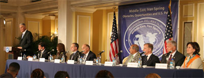 In un simposio, coincidente con l’anniversario della sentenza di una Corte d’Appello Federale in favore del principale movimento d’opposizione iraniano, il Mojahedin-e Khalq (OMPI/MEK), ex alte personalità di governo degli Stati Uniti hanno chiesto al Dipartimento di Stato di completare sollecitamente la sua revisione e di rimuovere il gruppo dalla sua lista di Organizzazioni Terroristiche Straniere (FTO). Il panel di oratori bi-partisan ha espresso disappunto circa l’incapacità da parte dell’Amministrazione di risolvere la crisi umanitaria a Camp Ashraf, in Iraq, dove risiedono 3.400 membri del MEK e le loro famiglie. Il generale Hugh Shelton, già presidente degli Stati Maggiori Riuniti (1997-2001); il generale James T. Conway, già comandante del Corpo dei Marines (2006-2010); il governatore Howard Dean, già presidente del Comitato Nazionale Democratico; Louis Freeh, già direttore del Federal Bureau of Investigation (FBI); Togo West Jr., già segretario per le Questioni dei Veterani; Ed Rendell, già governatore della Pennsylvania (2003-2011); la professoressa Sarah Sewall, direttore delle Operazioni di Risposta alle Atrocità di Massa alla Harvard Kennedy School of Government; e la professoressa Anita McBride, capo dello staff della first lady Laura Bush (2005-2009) hanno preso la parola nella conferenza, moderata dall’ambasciatore Mitchell Reiss, già direttore della Pianificazione delle Politiche del Dipartimento di Stato (2003-2005).“Qualsiasi sia la nostra affiliazione politica, essa non ha influenza oggi, poiché siamo uniti spalla a spalla nel nostro sforzo di ricondurre alla giustizia questo errore, di cancellare dalla lista il MEK e di aiutare la gente di Camp Ashraf”, ha detto l’ambasciatore Reiss nella sua introduzione.