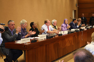 Da leggere, ottobre 2011 – President Rajavi avverte che il termine ultimo nel “Dicembre 2011” del governo iracheno per la chiusura di Campo Ashraf è un pretesto per un altro grave massacro, e più che mai richiede un intervento immediato da parte della Commissione delle Nazioni Unite sui Diritti Umani. Un numero di organizzazioni non governative per i diritti umani, parlamentari europei si sono incontrati mercoledì 21 settembre presso la sede europea delle Nazioni Unite a Ginevra Per difendere Ashraf e diritti umani in Iran. Erano presenti: President Rajavi, il Dott. Alejo Vidal-Quadras, vicepresidente del Parlamento europeo; Struan Stevenson, presidente della Delegazione per le Relazioni con l’Iraq nel Parlamento europeo, Sid Ahmed Ghozali, ex primo ministro dell’Algeria, Christiane Perregaux, co-presidente del Consiglio Legislativo di Ginevra; Gianfranco Fattorini, copresidente del Movimento contro il Razzismo e per l’Amicizia fra i Popoli (Mrap).Il relatore principale dell’incontro, la signora Rajavi, ha dichiarato che almeno 490 persone sono state giustiziate in Iran da gennaio 2011. Secondo i media statali iraniani, solo domenica, 18 settembre 23 persone sono state impiccate. Ha aggiunto: “Tuttavia, non solo l’ONU è stato indifferente alla repressione in Iran e a Campo Ashraf, ma sta ospitando il presidente dei mullah criminali all’Assemblea generale delle Nazioni Unite a New York. E la Commissione ONU per i Diritti Umani non ha menzionato violazioni dei diritti umani in Iran durante la recente riunione del Consiglio sui Diritti umani delle Nazioni Unite. “