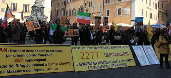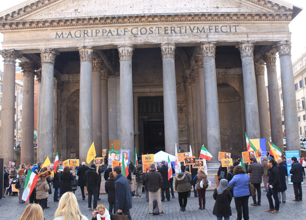CNRI, 26 Gennaio 2016 – In occasione della visita in Italia di Rohani, al Pantheon a Roma è andata in scena una manifestazione contro l’ondata di esecuzioni in Iran e contro l’attacco missilistico a Camp Liberty.