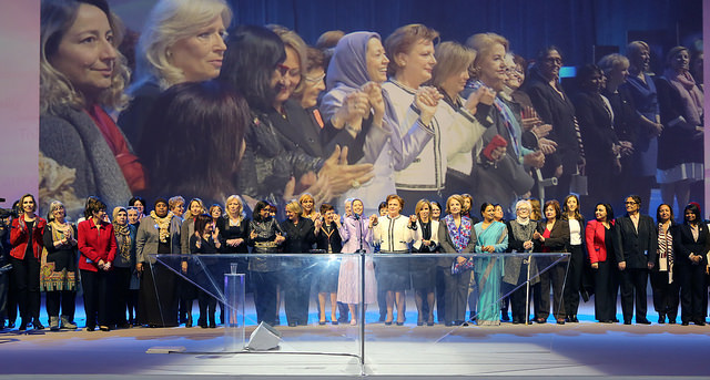 Sono onorata di trovarmi oggi qui, all’ufficio del Consiglio Nazionale della Resistenza Iraniana a Berlino e di poter intervenire di fronte a lei presidente Rajavi.