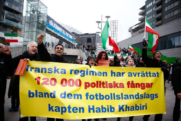 La partita amichevole disputatasi a Stoccolma martedì tra la Svezia e l’Iran è stata l’occasione per la comunità iraniana in Svezia per sfidare la legittimità del regime iraniano.