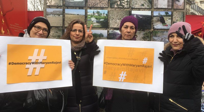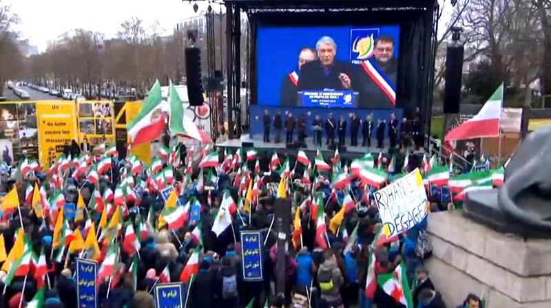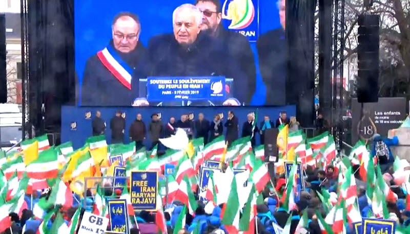 Una delegazione di politici e sindaci è salita sul podio con gli applausi dei manifestanti che hanno espresso solidarietà al popolo iraniano e alla loro resistenza, rappresentata dal Consiglio nazionale della resistenza iraniana (CNRI), guidato da Maryam Rajavi.